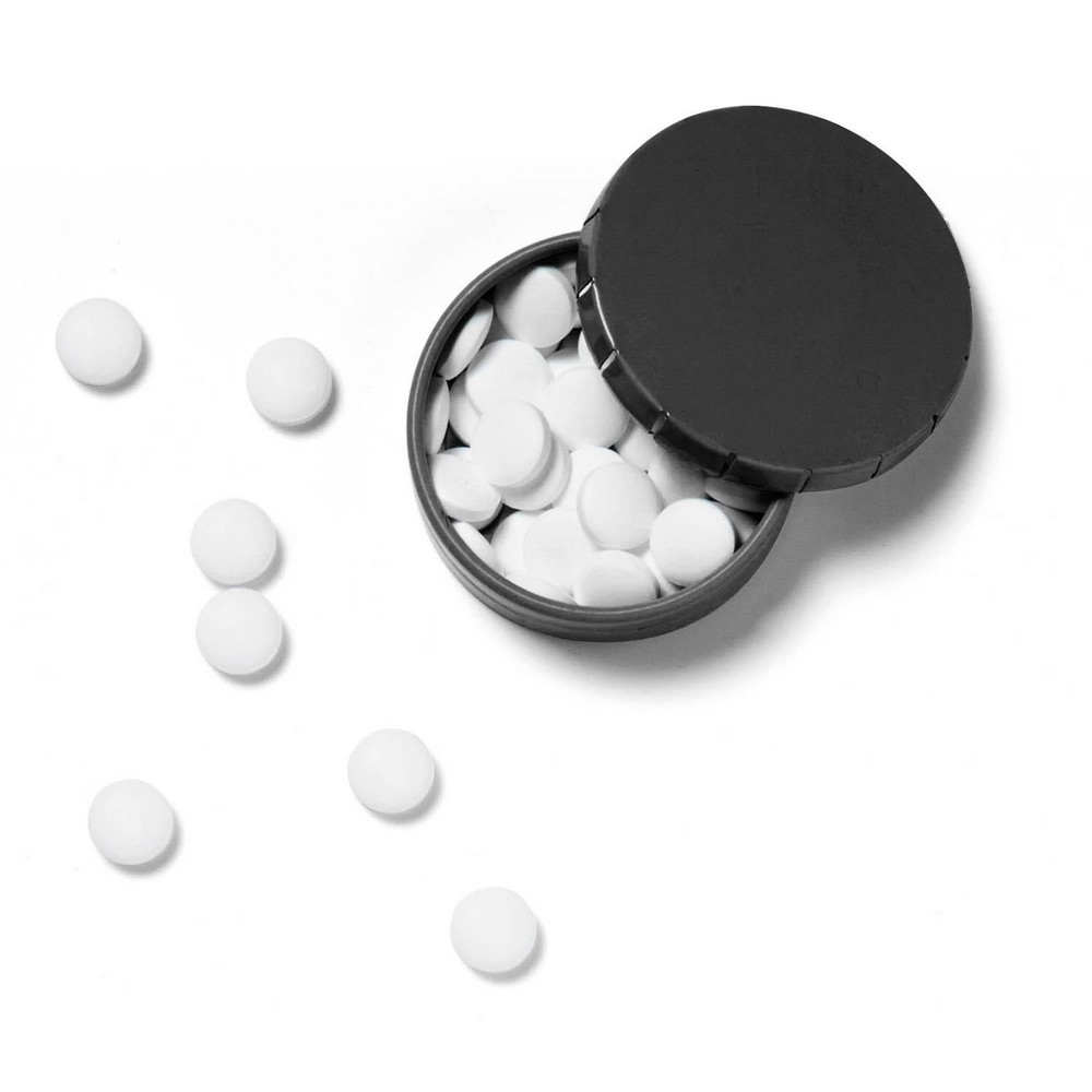 Miętówki bez cukru z nadrukiem Twojego logo, materiał: metal, kolor: czarny