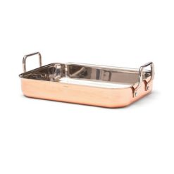 Naczynie do zapiekania, trójwarstwowa konstrukcja, na zewnątrz warstwa miedzi, wewnątrz aluminium i stal nierdzewna, szybkie i równomierne nagrzewanie