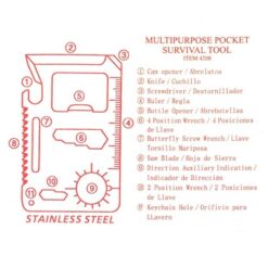 Narzędzie wielofunkcyjne w etui, 11 funkcji, otwieracz do puszek, nóż, śrubokręt, linijka, otwieracz do butelek, klucze do nakrętek, klucze motylkowe, piła, kątomierz