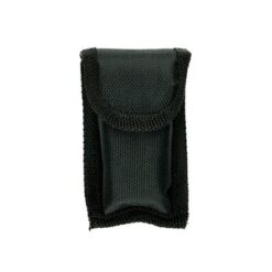 Narzędzie wielofunkcyjne w czarnym pokrowcu, posiada 12 funkcji oraz kolorowy uchwyt z czarnymi elementami, produkt wykonany z aluminium i stali nierdzewnej