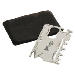 Narzędzie wielofunkcyjne w etui, posiada 9 funkcji: linijka (5 cm / 2 cale), mini wkrętak, otwieracz do kartonu, 2x wkrętak, klucze płaskie (#2, #4, #6, #8, #10, #12), podstawka pod telefon (karta nie jest dołączona), otwieracz do puszek, otwieracz do butelek, produkt wykonany ze stali nierdzewnej
