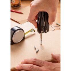 Narzędzie wielofunkcyjne, wykonane z aluminium, uchwyt z czarnymi detalami, 14 funkcji, czarny pokrowiec 600D w komplecie, ślad węglowy produktu: 2,53 kg CO2