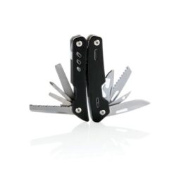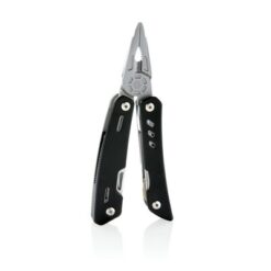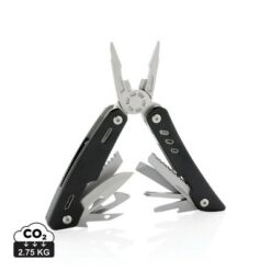 Narzędzie wielofunkcyjne, trwałe i wytrzymałe, wykonane ze stali nierdzewnej, aluminiowy uchwyt, 12 funkcji: szczypce, kombinerki, przecinak do kabli i drutu, nóż, śrubokręt krzyżakowy, mały śrubokręt płaski, piła, otwieracz do puszek, otwieracz do butelek, ostrze ząbkowane, szpikulec, pilnik i duży śrubokręt płaski, w ozdobnym pudełku, ślad węglowy produktu: 2,75 kg CO2