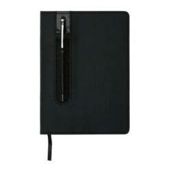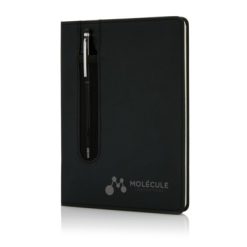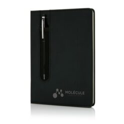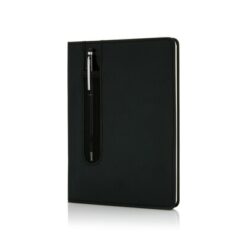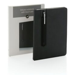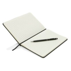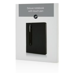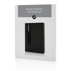 Notatnik A5 Deluxe, touch pen z nadrukiem Twojego logo, materiał: papier, stal nierdzewna, stal, kolor: czarny