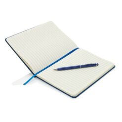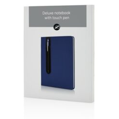 Notatnik A5 Deluxe, touch pen z nadrukiem Twojego logo, materiał: papier, stal nierdzewna, stal, kolor: niebieski