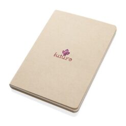 Notatnik A5 (48 kartek w linie), miękka okładka wykonana z trzciny cukrowej, strony wewnętrzne wykonane z mieszanki bambusa, kamienia i trzciny cukrowej, w obwolucie z papier kraftowego z certyfikatem FSC®