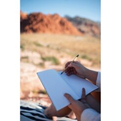 Notatnik (80 kartek 70g/m2 w linie), wykonany z materiałów pochodzących z recyklingu z certyfikatem GRS, całkowita zawartość materiałów z recyklingu obliczona na podstawie wagi całkowitej produktu: 99%, ślad węglowy produktu: 0,43 kg CO2
