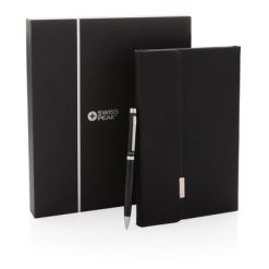 Notatnik A5 Swiss Peak z długopisem z nadrukiem Twojego logo, materiał: pu, papier, kolor: czarny
