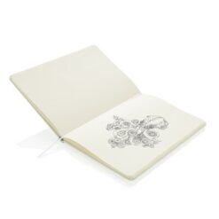 Notatnik A5 (72 puste kartki 70 g/m2 w kolorze kremowym), szkicownik, twarda okładka, tasiemka zakładkowa oraz elastyczna opaska do zamykania, ślad węglowy produktu: 0,54 kg CO2