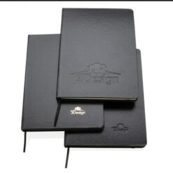 Notatnik A5, twarda okładka z nadrukiem Twojego logo, materiał: papier, kolor: czarny
