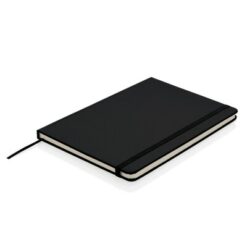 Notatnik A5 (72 kremowe kartki 70 g/m2 w linie), twarda okładka, tasiemka zakładkowa i elastyczna opaska do zamykania, ślad węglowy produktu: 0,54 kg CO2