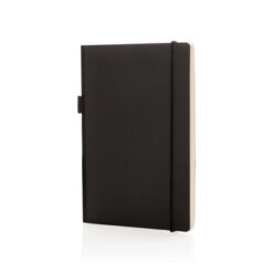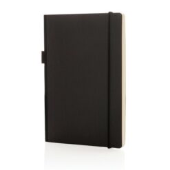 Notatnik A5, (80 kremowych kartek w linie), twarda okładka, okładka oraz strony wewnętrzne posiadają certyfikat FSC® (Forest Stewardship Council), tasiemka zakładkowa, elastyczna pętla na przybory do pisania, z tyłu kieszonka na luźne notatki, ślad węglowy produktu: 0,55 kg CO2