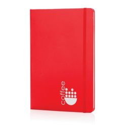 Notatnik A5, twarda okładka z nadrukiem Twojego logo, materiał: papier, kolor: czerwony