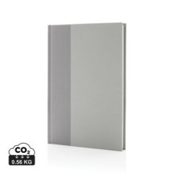 Notatnik (80 białych kartek 80 g/m2 w linie), twarda okładka, wykonany z materiałów pochodzących z recyklingu z certyfikatem GRS, całkowita zawartość materiałów z recyklingu obliczona w oparciu o wagę całkowitą przedmiotu: 99%, ślad węglowy produktu: 0,56 kg CO2