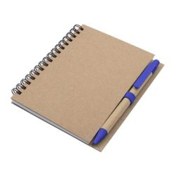 Notatnik A6 (50 kartek 80 g/m2 w linie), twarda okładka z kartonu z recyklingu, spiralne bindowanie, w komplecie długopis z trzonem z kartonu z recyklingu i kolorowymi elementami (wyprodukowany w Ukrainie / made in Ukraine)