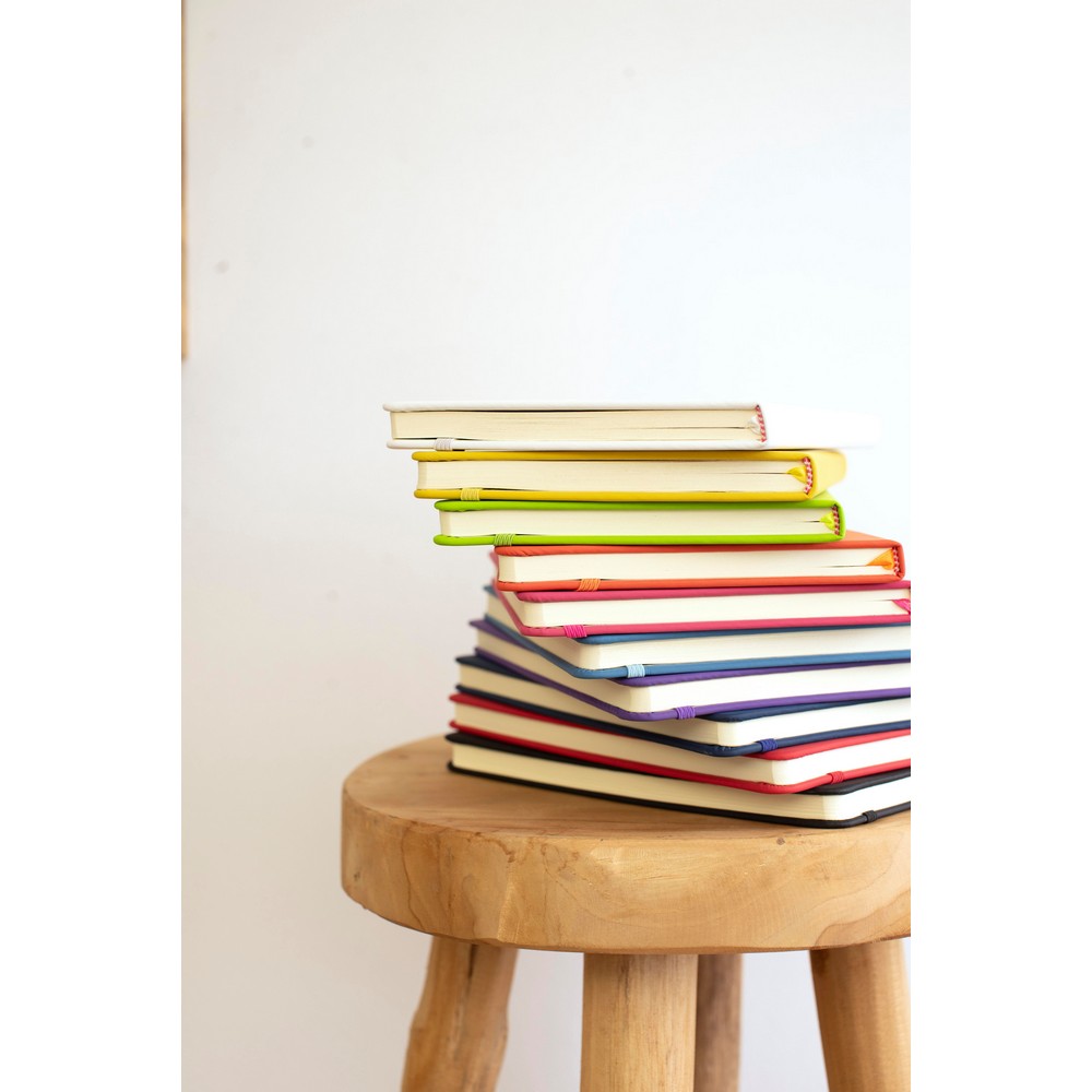 Notatnik w formacie ok. A5, posiada 96 kartek w linie (192 strony), tasiemka zakładkowa umożliwia wygodne zaznaczanie ostatniej strony lub ważniejszych notatek, dodatkowe zamknięcie w postaci dopasowanej kolorystycznie elastycznej opaski, twarda okładka wykonana z PU