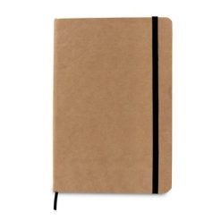 Notatnik w formacie ok. A5, posiada 96 kremowych kartek w linie (192 strony), tasiemka zakładkowa umożliwia wygodne zaznaczanie ostatniej strony lub ważniejszych notatek, dodatkowe zamknięcie w postaci kolorowej elastycznej opaski, twarda okładka wykonana z kartonu z recyklingu