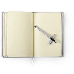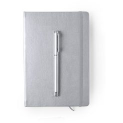 Notatnik ok. A5 z piórem kulkowym z nadrukiem Twojego logo, materiał: pu, kolor: srebrny