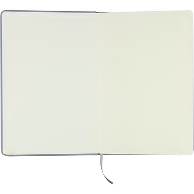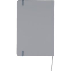 Notatnik ok. A5 RPET, z twardą okładką wykonaną z RPET PU, zawierający 80 stron w linie (70 g/m²), tasiemka zakładkowa umożliwia wygodne zaznaczanie ostatniej strony lub ważniejszych notatek, dodatkowe zamknięcie w postaci kolorowej elastycznej opaski, ikona recyklingu na tylnej stronie