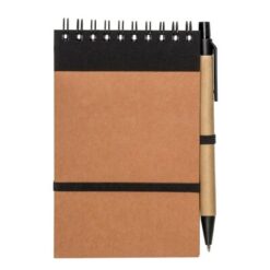 Notatnik reporterski w kieszonkowym formacie ok. A6, posiada 70 kartek w linie (140 stron) i spiralne bindowanie, dodatkowe zamknięcie w postaci dopasowanej kolorystycznie elastycznej opaski, w komplecie znajduje się długopis z kolorowymi elementami, wkład w niebieskim kolorze, produkt wykonany między innymi z kartonu