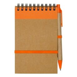 Notatnik reporterski w kieszonkowym formacie ok. A6, posiada 70 kartek w linie (140 stron) i spiralne bindowanie, dodatkowe zamknięcie w postaci dopasowanej kolorystycznie elastycznej opaski, w komplecie znajduje się długopis z kolorowymi elementami, wkład w niebieskim kolorze, produkt wykonany między innymi z kartonu