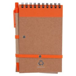Notatnik ok. A6 z długopisem z nadrukiem Twojego logo, materiał: guma, karton, papier, bawełna, kolor: pomarańczowy