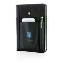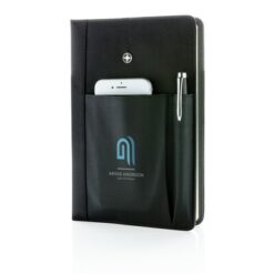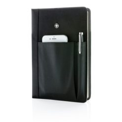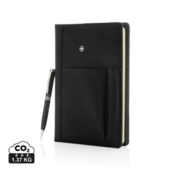 Notatnik Swiss Peak ok. A5, długopis z nadrukiem Twojego logo, materiał: pu, kolor: czarny