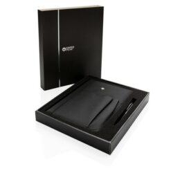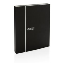 Notatnik (ok. A5, 96 kartek 80 g/m2), długopis, okładka wielokrotnego użytku wykonana z poliestru 1680D i 600D, kieszonka na telefon lub inne drobne akcesoria, w pudełku podarunkowym Swiss Peak, ślad węglowy produktu: 1,37 kg CO2