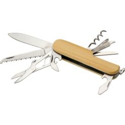 Narzędzie wielofunkcyjne, scyzoryk, 9 funkcji z nadrukiem Twojego logo, materiał: metal, bambus, kolor: drewno