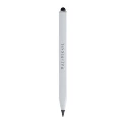 Ołówek, linijka, touch pen, wykonany aluminium z recyklingu, dzięki wykorzystaniu specjalnej wolnościerającej się grafitowej końcówki długość pisania ołówka to około 20 000 metrów w porównaniu z tradycyjnym ołówkiem którego długość pisania to około 200 metrów, notatki można zmazać standardową gumką do mazania, ślad węglowy produktu: 0,1 kg CO2
