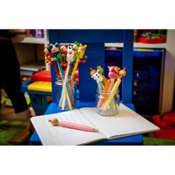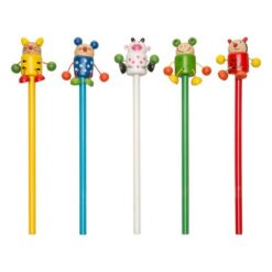 Ołówek „zwierzątko” z kolorowym trzonem, końcówka nie jest naostrzona, występuje w 5 różnych wzorach sprzedawanych losowo: tygrys, biedronka, mysz, żaba i krowa, produkt wykonany z drewna i nylonu