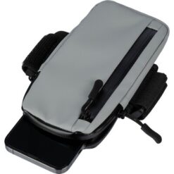Opaska na ramię, etui na telefon z nadrukiem Twojego logo, materiał: metal, poliester, silikon, kolor: szary