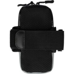 Opaska na ramię funkcjonująca jako etui na telefon, przeznaczona do noszenia na ramieniu, przyda się do uprawniania sportu oraz ćwiczeń, zawiera dużą wodoodporną komorę zapinaną na zamek, mała kieszeń wewnątrz i wodoodporna kieszeń z przodu, produkt wykonany z poliestru