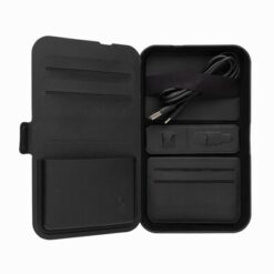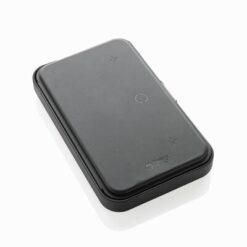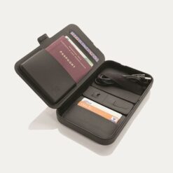 Organizer podróżny Swiss Peak z ładowarką bezprzewodową 3 w 1, 15W, wykonany z recyklingowanego PU RCS, przegrody na paszport i karty, uchwyt na kable, magnetyczny portfel wewnętrzny, ładowarka 15W do telefonu, ładowarka 5W do etui na słuchawki, ładowarka 2,5W do smartwatchy (Apple Watch), kabel TPE 120 cm, opakowanie FSC® mix, bez PVC, wejście 9V/3A, wyjście: telefon 15W, słuchawki 5W, zegarek 2,5W
