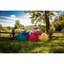 Parasol automatyczny 23″, posiada 8 paneli oraz zapięcie na rzep, drewniany trzon i rączka, produkt wykonany z poliestru 190T