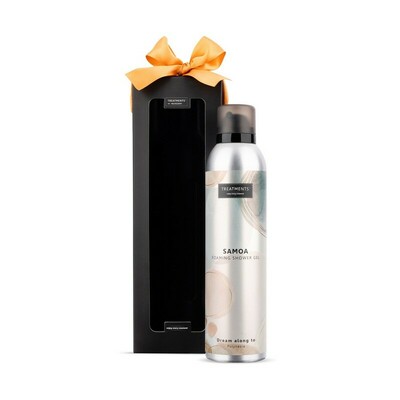 Pieniący się żel pod prysznic TREATMENTS, 200 ml, zapakowany w elegancki kartonik, sprawdzi się w codziennej pielęgnacji, dostępne różne warianty zapachowe: 03 – Ceylon, 06 – Mahayana, 08 – Omani, 11 – Uyuni, 16 – Zhejinag, 19 – Shinshiro, 21 – Verona, 98 – Samoa. Znakowanie produktu jest możliwe tylko na srebrnej lub złotej folii z czarnym nadrukiem albo na czarnej apli ze srebrnym lub złotym nadrukiem.
