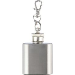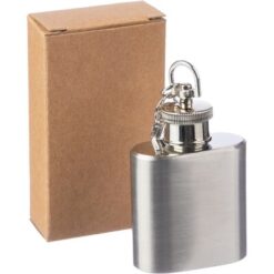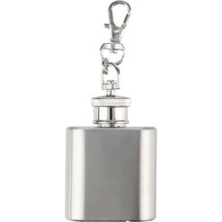 Brelok do kluczy „piersiówka” 30 ml, z karabińczykiem umożliwiającym przypinanie, produkt wykonany ze stali nierdzewnej