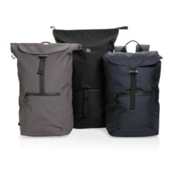 Plecak na laptopa 15,6″, w 100% wodoodporny, wytrzyma nawet najgorsze warunki pogodowe, miękkie szelki i tył, materiał zewnętrzy oraz podszewka wykonane z materiałów pochodzących z recyklingu, dzięki czemu każdy plecak został wykonany z 18 ponownie przetworzonych butelek PET 0,5l, dzięki zastosowaniu technologii śledzącej AWARE™ wykorzystane włókna są identyfikowalne z pochodzenia, 2% wpływów z każdego sprzedanego produktu z kolekcji Impact jest przekazywane na rzecz Water.org, nie zawiera PVC