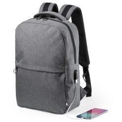 Plecak z miękką przegrodą na laptopa 15″ i tablet 10″, wykonany z RPET, gniazdo USB do ładowania telefonów (kabel dołączony, power-bank nie dołączony), miękki tył i paski na ramię