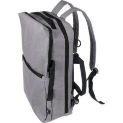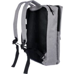 Plecak na laptopa 15″ z podszewką wewnątrz, pojemność plecaka to 1 l, posiada uchwyt do noszenia w dłoni oraz dwa boczne uchwyty, dwie duże przegrody zapinane na zamek, w tym jedna z przegrodą na laptopa 15″ zapinaną na rzep, z przodu mała kieszonka zapinana na zamek, wewnątrz oddzielny regulowany pasek na ramię do zamocowania na plastikowych haczykach (łącznie 4 plastikowe haczyki), za wyściełanym tyłem ukryte są dwa regulowane paski na ramiona, które umożliwiają noszenie torby jak plecaka, sprawdzi się w podróży, ikona RPET na metce, produkty wykonany z RPET, poliestru, siatki i pianki