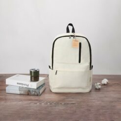 Plecak z wyściełanymi przegródkami na laptopa 15″ i tablet 10″, miękki tył zwiększający komfort użytkowania i regulowane paski na ramię umożliwiające dopasowanie ich długości do własnych preferencji, produkt wykonany z bawełny z recyklingu 330 g/m2
