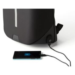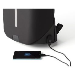 Plecak na laptopa 15″, funkcja redukcji wagi, przegroda główna zamykana na zamek, suwaki blokowane zamkiem szyfrowym (3 cyfry), wiele kieszeni wewnątrz, gniazdo USB z kablem do ładowania telefonów (power-bank nie dołączony), regulowane paski na ramię