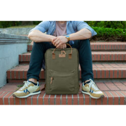 Plecak B’RIGHT na laptopa 15,6″, posiada 2 przegrody główne na zamek błyskawiczny, przednia przegroda główna z różnymi kieszonkami w środku w tym 1 boczną, tylna przegroda główna z kieszenią na laptopa, wnętrze przegród głównych wykończone podszewką w kolorze uchwytów, 1 kieszeń przednia na zamek błyskawiczny, 2 uchwyty z możliwością złączenia paskiem na napę, miękki tył zwiększający komfort użytkowania i regulowane paski na ramię umożliwiające dopasowanie ich długości do własnych preferencji, produkt wykonany z RPET, zgodny z certyfikatem GRS (Global RecycIed Standard)