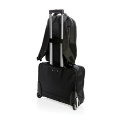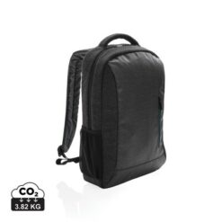 Plecak z miękką przegrodą na laptopa 15,6″, wykonany z wytrzymałego poliestru 900D, przestronna przegroda główna, przednia kieszeń na zamek, dopasowane paski zwiększają komfort noszenia, posiada pasek do zamocowania na walizce, nie zawiera PVC, ślad węglowy produktu: 3,82 kg CO2