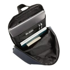 Plecak na laptopa 15,6″, przestronna przegroda główna, wewnątrz 2 kieszenie i 2 pętle na przybory do pisania, miękki tył, regulowane paski na ramiona, wnętrze z poliestru 210D, na zewnątrz PU, nie zawiera PVC, ślad węglowy produktu: 3,03 kg CO2