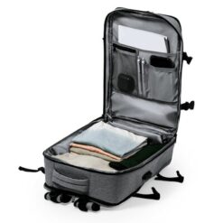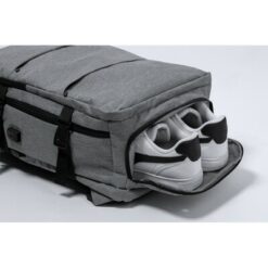 Plecak na laptopa 17″, wykonany z RPET, kieszeń na buty, miękka przegroda na laptopa, gniazdo USB do ładowania telefonów (power-bank nie dołączony), miękki tył i regulowane paski na ramię
