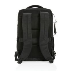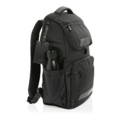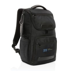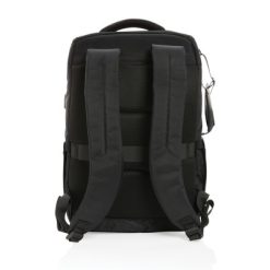 Plecak na laptopa Swiss Peak 15,6″, ochrona RFID z nadrukiem Twojego logo, materiał: rpet, kolor: czarny