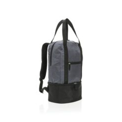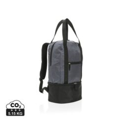 Plecak termoizolacyjny, wykonany z poliestru 500D, 2 przegrody zamykane na zamek błyskawiczny, dolna przegroda termoizolacyjna mieszcząca do 8 puszek 0,33l, plecak można łatwo przekształcić w torbę do noszenia, ślad węglowy produktu: 5,15 kg CO2