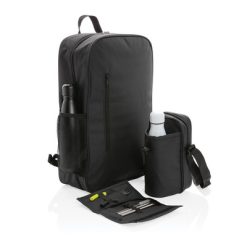 Plecak termoizolacyjny, pojemność do 12 puszek 0,33l lub do 8 puszek i 2 butelek 1l, z przodu kieszenie na zamek, wnętrze z poliestru 210D i PEVA, na zewnątrz poliester 600D, na zawiera PVC, ślad węglowy produktu: 3,04 kg CO2