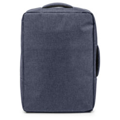 Plecak na laptopa 15,6″ z bocznym uchwytem umożliwiającym funkcjonowanie jako torba na laptopa, zapinana główna przegroda z miękką kieszenią na laptopa lub dokumenty, 2 małe kieszenie oraz 2 szlufki na długopisy, zamek błyskawiczny z dodatkowym pullerem ułatwiającym rozpinanie, pasek do zamocowania na torbie podróżnej, posiada regulowane paski na ramię umożliwiające dopasowanie ich długości do własnych preferencji, produkt wykonany z RPET